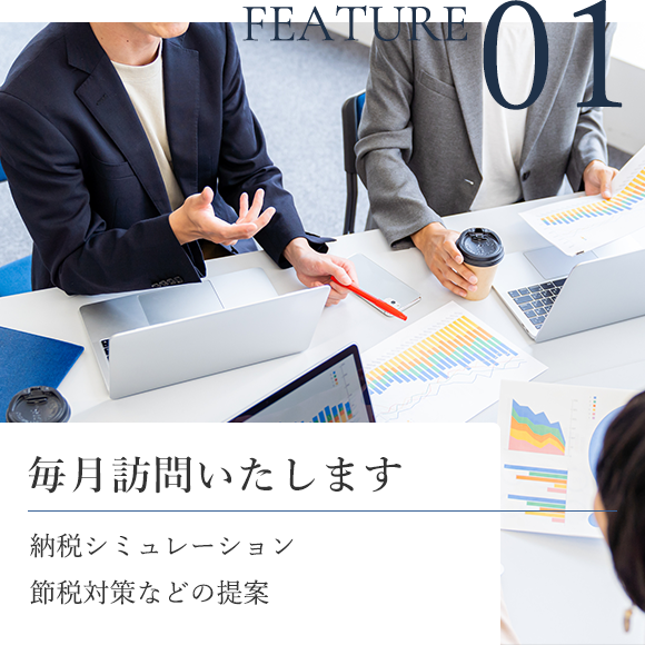 当事務所は、巡回監査を実施することにより、お客様と毎月面談し、会計帳簿の適時性と正確性を確認します。巡回監査後のデータを使用し、経営者の意思決定に役立つ資料を提供し経営面でのアドバイスを行います。